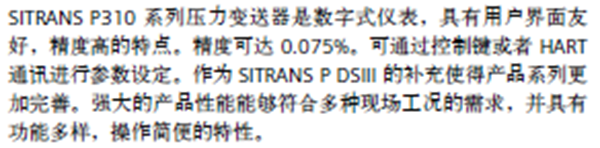 SITRANS P310 系列壓力變送器圖片
